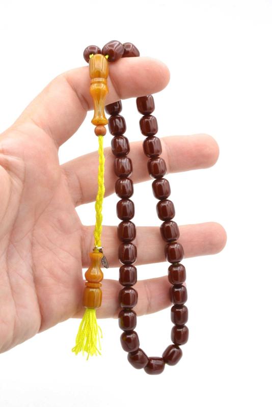 Renk: Kahverengi USTA İŞÇİLİKLİ SIKMA KEHRİBAR TESBİH USTA İŞİ SİSTEMLİ GÜNLÜK ÇEKİME UYGUNDUR TANE EBADI: 9*10 MM İMAME BOY: 3.3 CM TOPLAM BOY: 32 CM Ürünlerimiz doğal olduğu için renk tonlarında küçük farklılıklar olabilir.