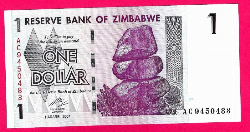 Zimbabwe 1 Dollar 2007 p65 UNC (TK 17 460) ÇİL, bir ay önce satışa sunulmuştur.