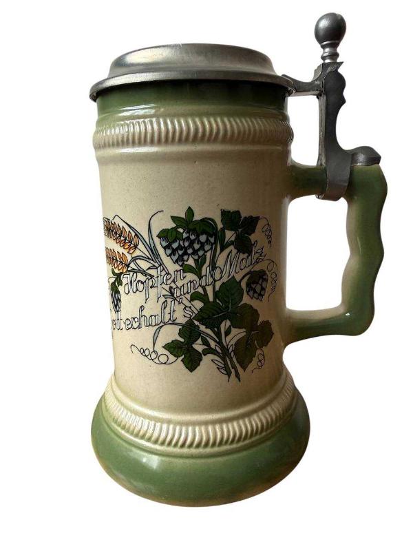 Zin Kapaklı Almanya Bierkrug Serbetçiotu Simgesi Tankart Bira Bardağı başlıklı antika/koleksiyon objesi Avrupa menşe’lidir. 1950-1999 arası dönemine aittir.