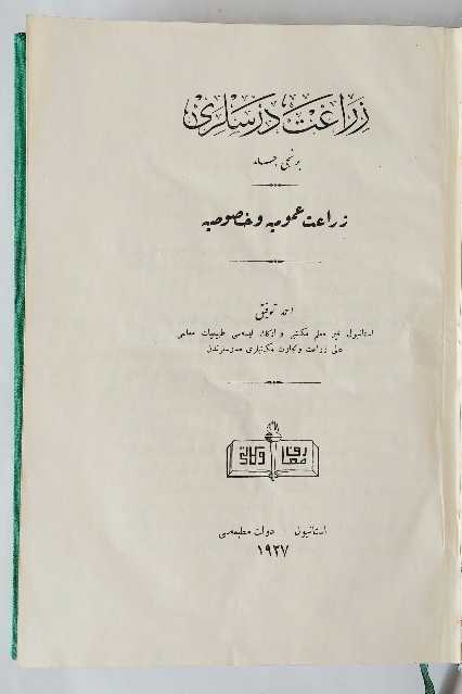Ziraat Dersleri Ziraat-i Umumiye ve Hususiye, 1. Cilt [Bu Kadar Çıkmıştır.], Ahmed Tevfik tarafından kaleme alınmıştır. Kitap 1927 yılında Maarif Vekeleti tarafından [İstanbul, Devlet Matbaası] yayınlanmıştır. Sayfa bilgisi 7+625+1 s. olarak belirtilmiştir. Ziraat Dersleri Ziraat-i Umumiye ve Hususiye, 1. Cilt [Bu Kadar Çıkmıştır.] adlı eser Osmanlıca dilindedir.