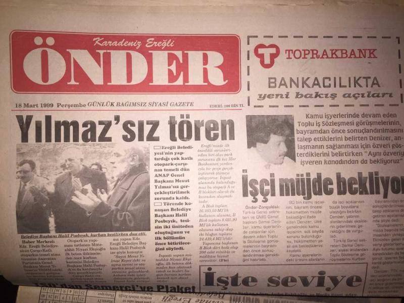 Zonguldak Karadeniz Ereğli Önder Gazetesi 18 Mart 1999 adlı eser, Kitap > Süreli Yayınlar > Gazeteler > Türkiye > Mahalli > Günlük kategorisinde İkinci El olarak satıştadır.
