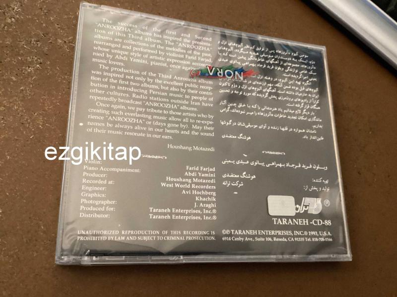 anroozha - farid farjad CD (ambalajı açılmamış) third albüm başlıklı ürün, Efemera, Müzik, Sinema > Müzik, Plak, Kaset, CD > Müzik CD'si > Yabancı Müzik CD kategorisi altında İkinci El olarak satılmaktadır.