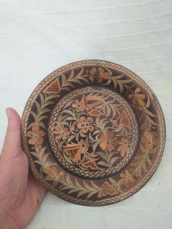 antep işi bakır duvar süsü... içine güzel çiçek bezemeler işlenmiş nostaljik bi ürün... Kullanım objesi , ethnografik sanat , ethnografic art , folk art...