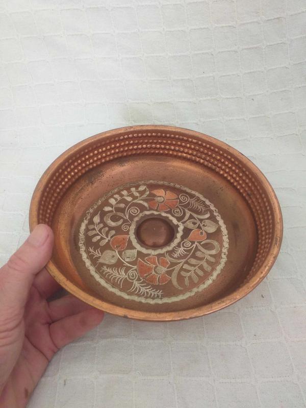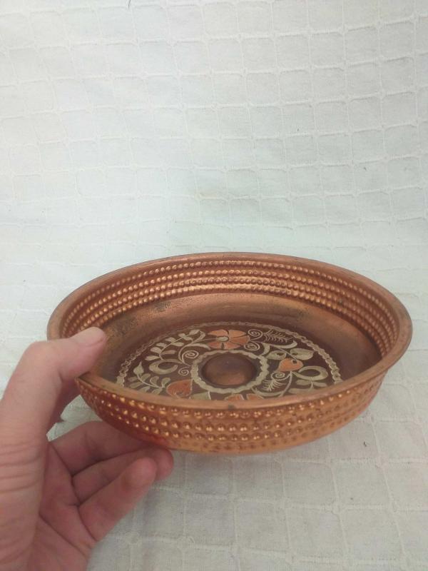 antep işi bakır hamam tası... içine güzel çiçek bezemeler işlenmiş nostaljik bi ürün... Kullanım objesi , ethnografik sanat , ethnografic art , folk art...