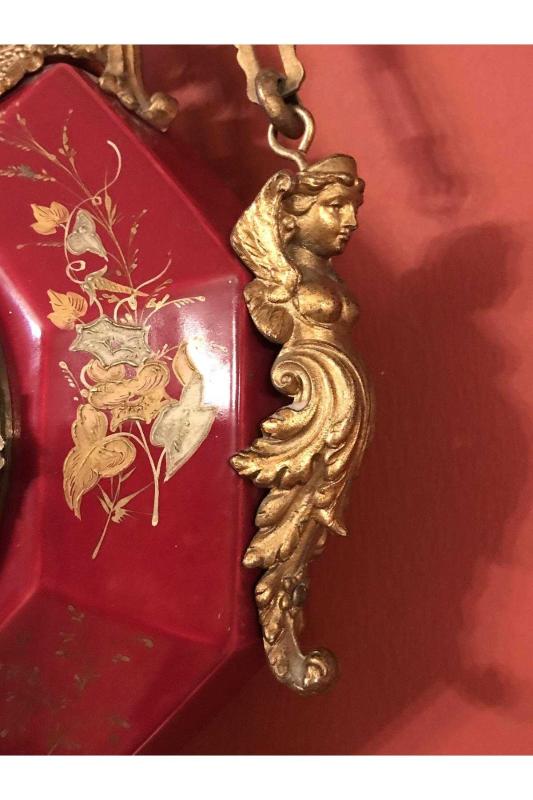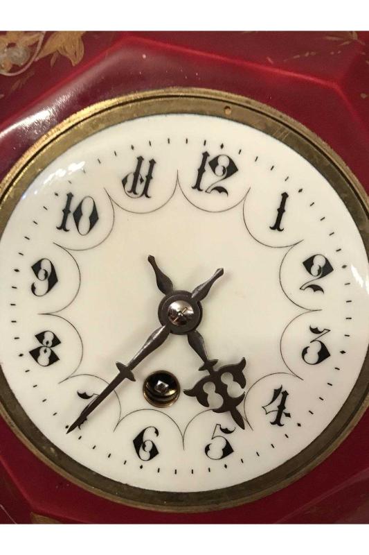 antika Fransız 1900 ler başı bronz detaylı porselen duvar saati Zincir hariç saatin ölçüler 38 x 26 başlıklı antika/koleksiyon objesinin menşei belirtilmemiştir. Objenin ait olduğu dönem bilinmeketedir.