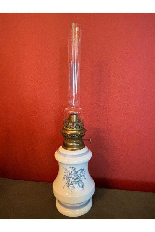 antika Fransız porselen gaz lambası 47 cm boyunda başlıklı antika/koleksiyon objesinin menşei belirtilmemiştir. Objenin ait olduğu dönem bilinmeketedir.