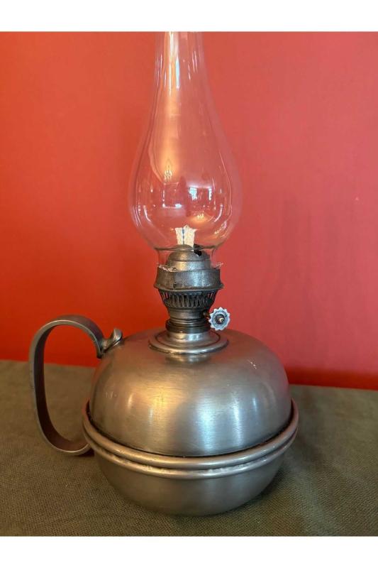 antika Fransız zin (kurşun) gaz lambası 29 cm boyunda başlıklı antika/koleksiyon objesinin menşei belirtilmemiştir. Objenin ait olduğu dönem bilinmeketedir.