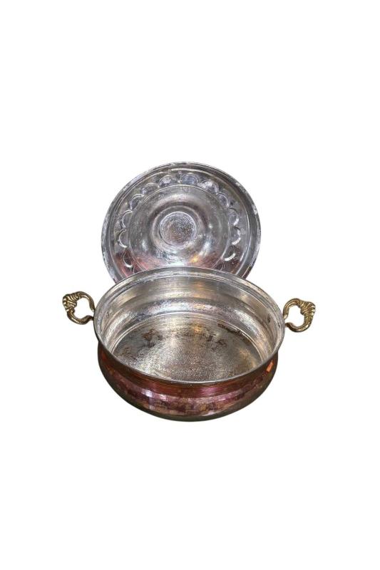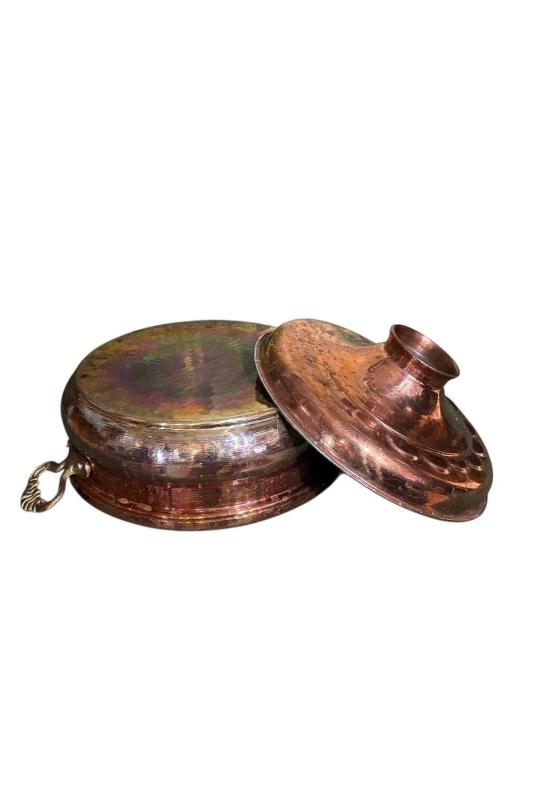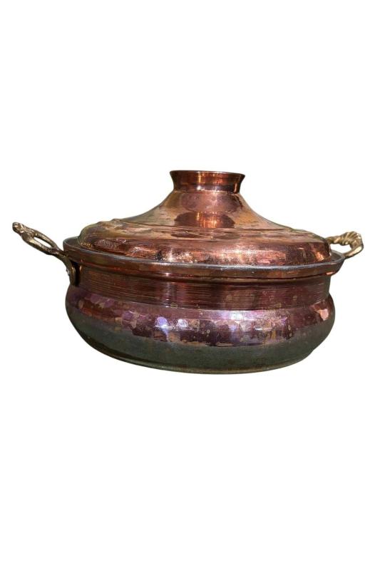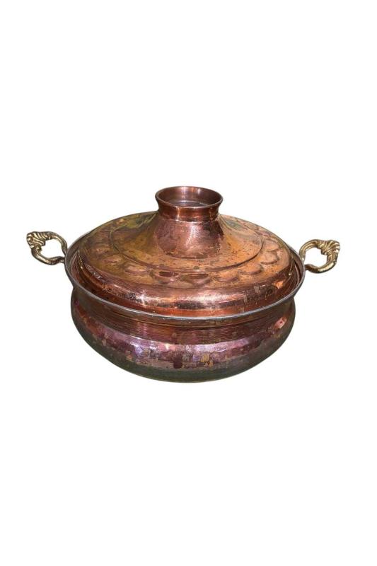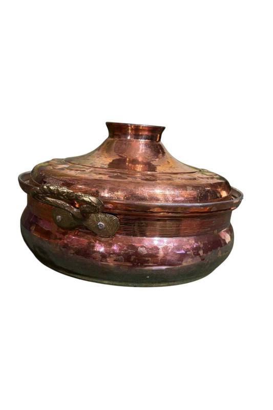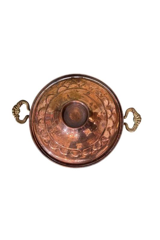 antika bakır dekorluk tencere - 23,5 cm çapında 14 cm boyunda başlıklı antika/koleksiyon objesinin menşei belirtilmemiştir. Objenin ait olduğu dönem bilinmeketedir.