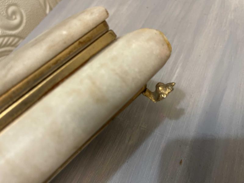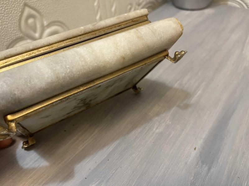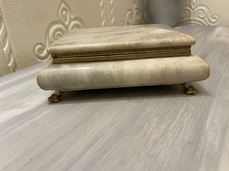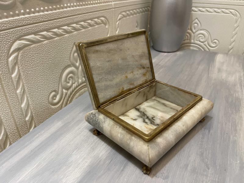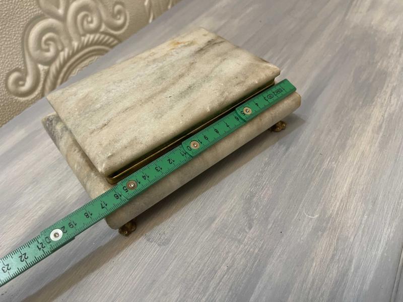 aslan ayak modeli ile şık görünümü diğer mermer kutulara fark ayartmaktadır. ayaklar ve şeritler pirinçtir. ürün kondsiyonu iyidir. problemsiz üründür. 2502462 #antika #retro #vintage #mermer #aslanayak #mermerkutu #masaorganizeri #mermerorganizer