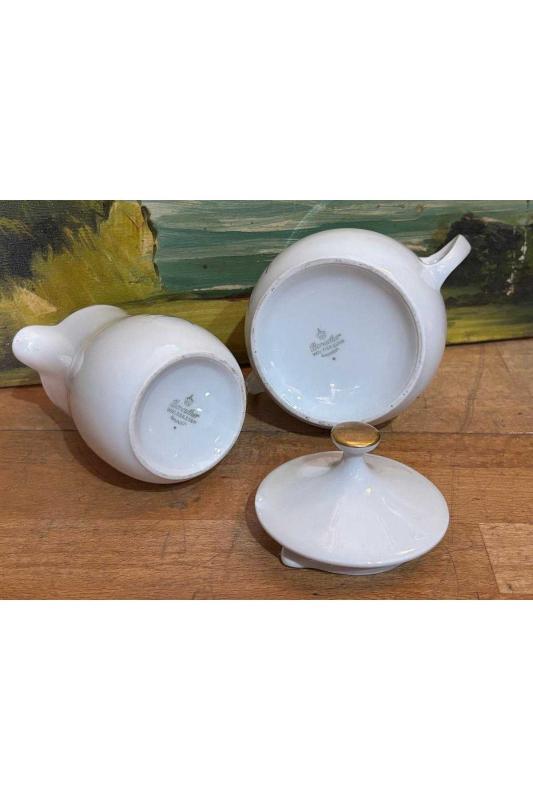 bareuther bavaria porselen şekerlik ve sütlük takımı - şekerlik 10 cm sütlük 9,5 cm boyunda başlıklı antika/koleksiyon objesinin menşei belirtilmemiştir. Objenin ait olduğu dönem bilinmeketedir.