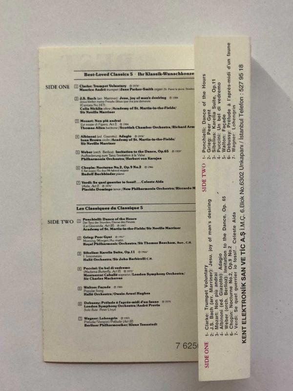 best loved classics 5 kaseti, clarke: trumpet voluntary, mozart: non piü andrai, weber invitation to the dance,chopin: nocturne, 2 yıl önce satışa sunulmuştur.