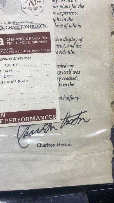 charlton heston İMZALI FOTOĞRAFI TİYATRO BİLETİ VE BELGE