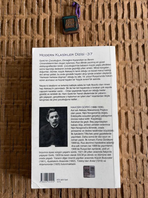 çocukluğum, misim gorki tarafından kaleme alınmıştır. Kitap 2022 yılında iş bankası kültür yayınları tarafından [istanbul ] 9786053321910 ISBN kodu ile yayınlanmıştır. Satışta olan kitap, yayınevinin 16. baskısıdır. Bu baskının çevirisi mazlum beyhan tarafından yapılmıştır. 278 sayfadır. çocukluğum adlı eser Türkçe dilindedir.