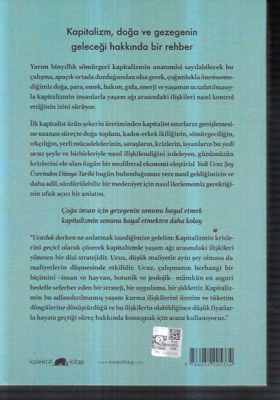 doğa, para, emek, bakım, gıda, enerji, yaşam Yedi Ucuz Şey Üzerinden Dünya Tarihi, Raj Petel, Jason W. Moore tarafından kaleme alınmıştır. Kitap 2019 yılında Kolektif Kitap tarafından [İstanbul] yayınlanmıştır. Bu baskının çevirisi Serkan Gündüz tarafından yapılmıştır. 286 sayfadır. Sayfa bilgisi 2. hamur olarak belirtilmiştir. doğa, para, emek, bakım, gıda, enerji, yaşam Yedi Ucuz Şey Üzerinden Dünya Tarihi adlı eser Türkçe dilindedir.