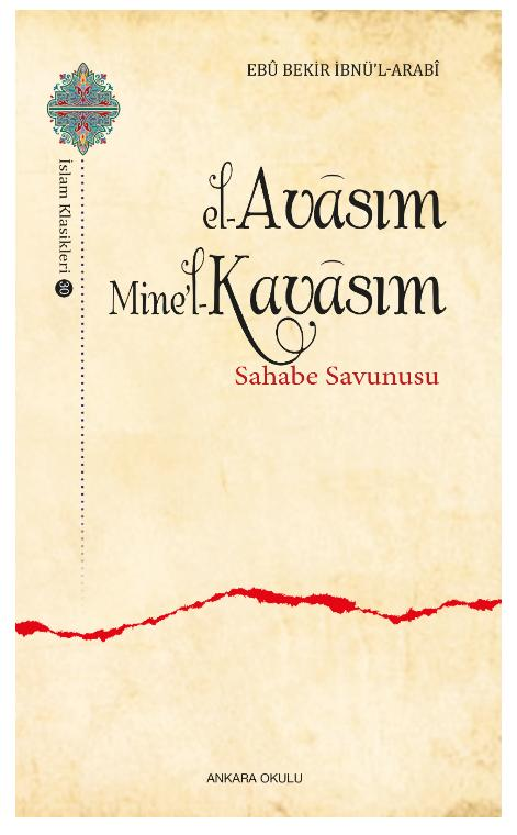 el-Avâsım Mine’l-Kavâsım ( sahabe savunusu ), Ebû Bekir İbnü’l-Arabi tarafından kaleme alınmıştır. Kitap 2021 yılında Ankara Okulu Yayınları tarafından [Ankara] 978-605-7596-82-6 ISBN kodu ile yayınlanmıştır. Satışta olan kitap, yayınevinin 1. baskısıdır. 388 sayfadır. el-Avâsım Mine’l-Kavâsım ( sahabe savunusu ) adlı eser Türkçe dilindedir.