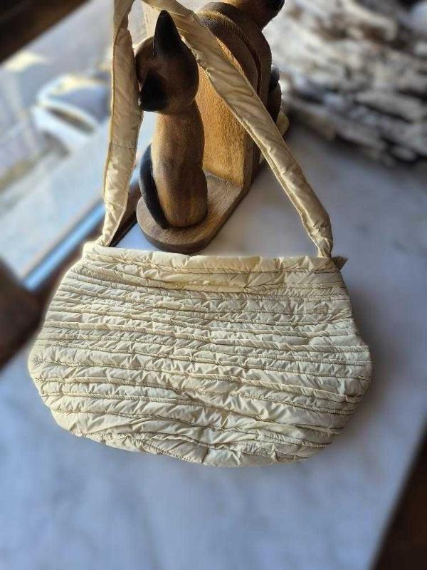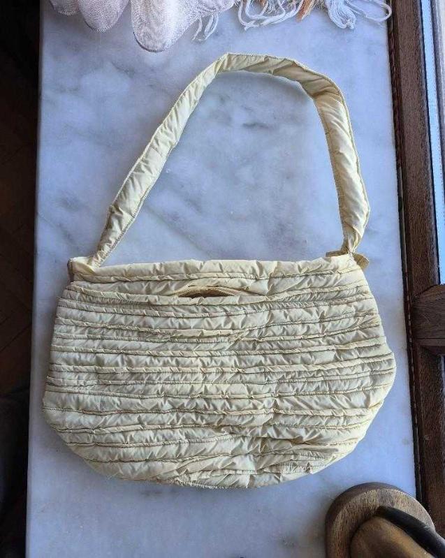 el yapımı puf çanta ekru başlıklı antika/koleksiyon objesi Türkiye menşe’lidir. 2000 ve sonrası dönemine aittir.