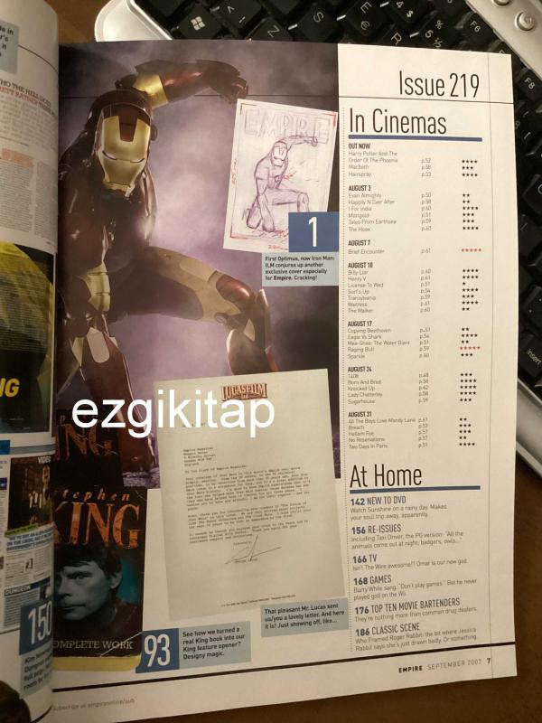 Eser mark dinning editörlüğünde hazırlanmıştır. Kitap 2007 yılında yayınlanmıştır. Bu baskının çevirisi *** tarafından yapılmıştır. 186 sayfadır. empire sinema dergisi eylül 2007 (ing) empire magazine september 2007 (iron man indiana jones jessica biel angelina jolie the mummy hellboy stephen king the shining brett ramer chris cooper john cusack) adlı eser İngilizce dilindedir.
