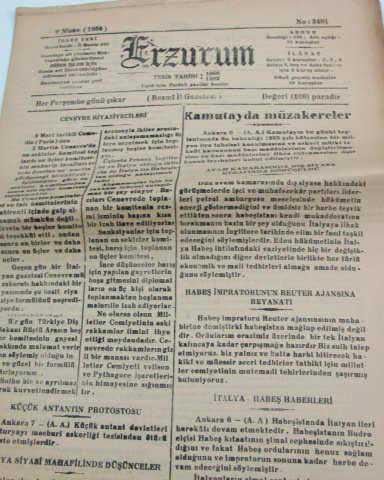 çıktığı yer : erzurum gazete adı : erzurum yayın süresi: ------- sahibi: ------- sayı : 3491 yıl :1936