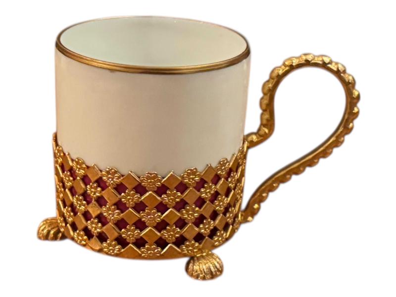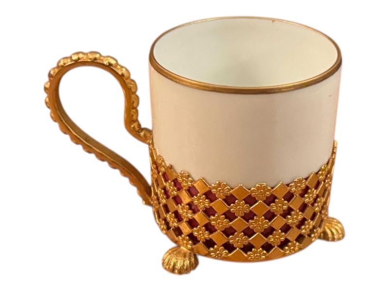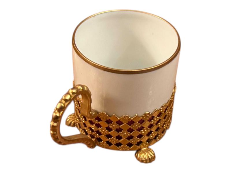 fransız limoges pirinç zarflı porselen Türk kahvesi fincanı