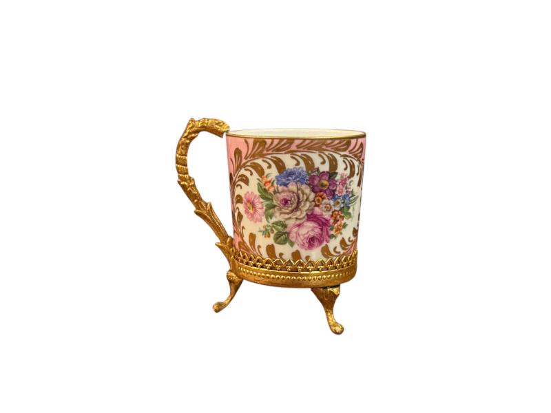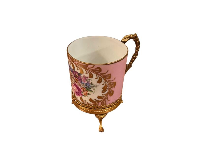 fransız limoges pirinç zarflı porselen fincan