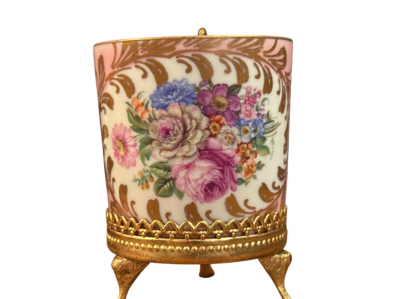 fransız limoges pirinç zarflı porselen fincan başlıklı antika/koleksiyon objesi Avrupa menşe’lidir. 1950-1999 arası dönemine aittir.