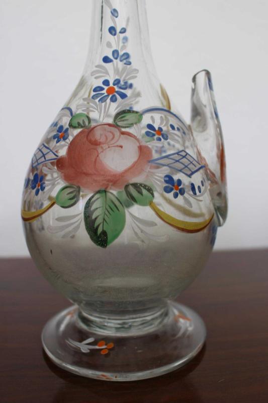 üzeri tamamen el boyama çok eski gülabdan ancak kulp ve emzik kısmı kırık olduğu için fiyat düşüldü.