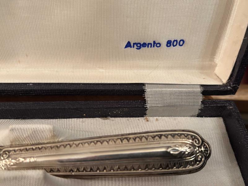 italyan argento 800 kutusunda gümüş kaplama servis seti başlıklı antika/koleksiyon objesi Avrupa menşe’lidir. 1900-1949 arası dönemine aittir.