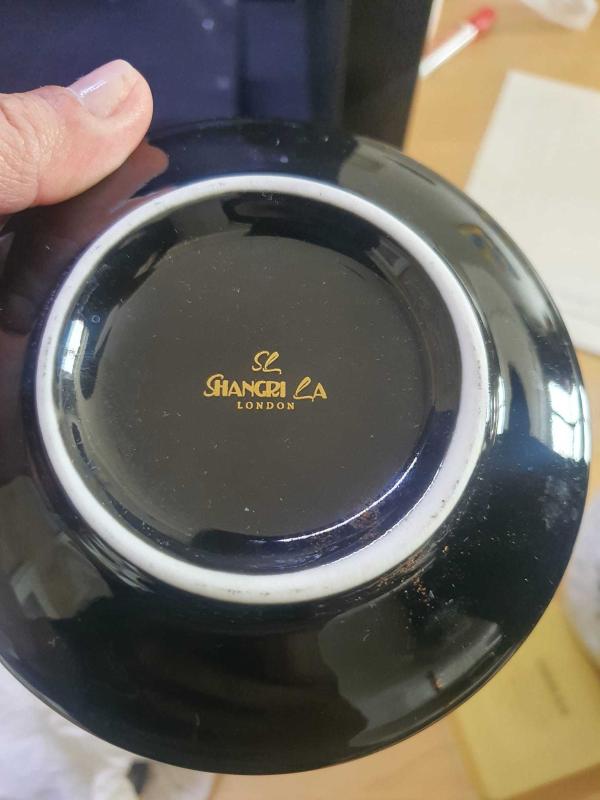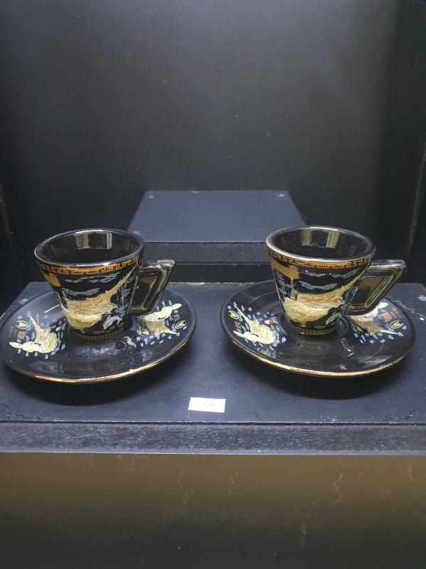 Kıbrıs baskılı Siyah zemin altın yaldız desenli 2 li fincan seti STONGANİ LONDON marka Avrupa malı 1970-80 ler