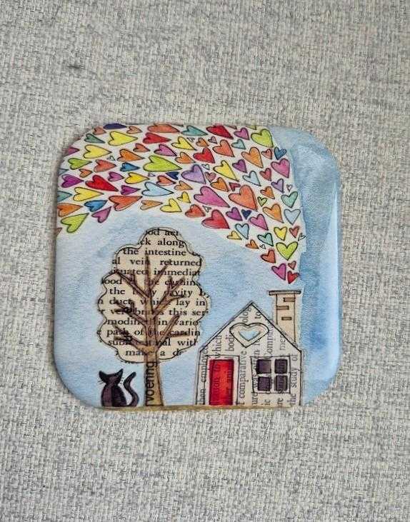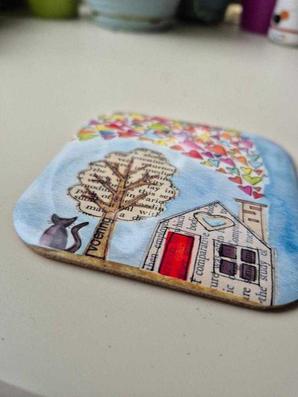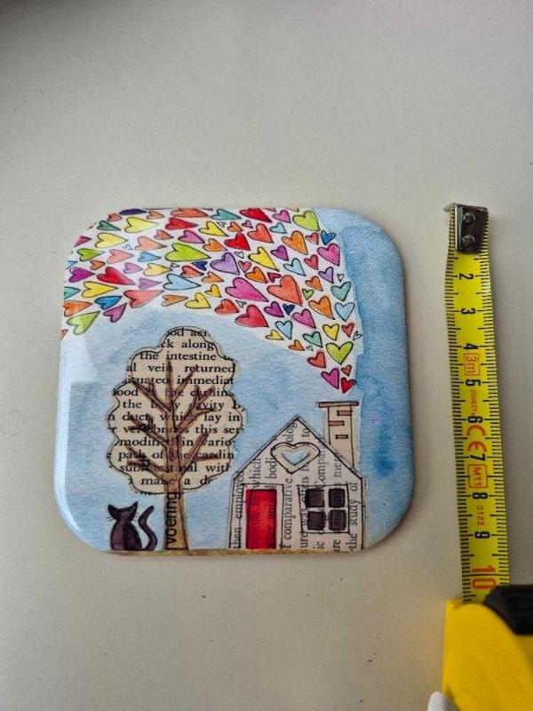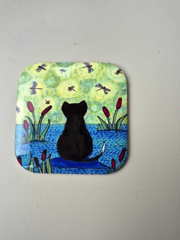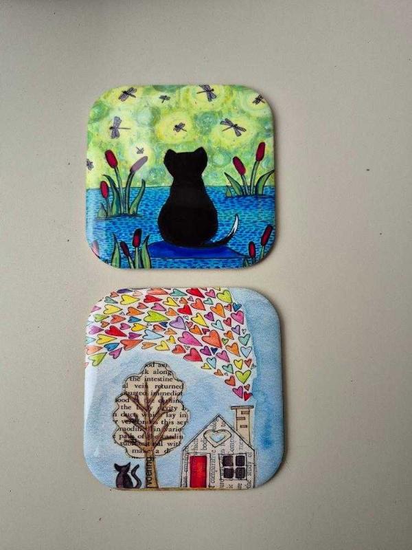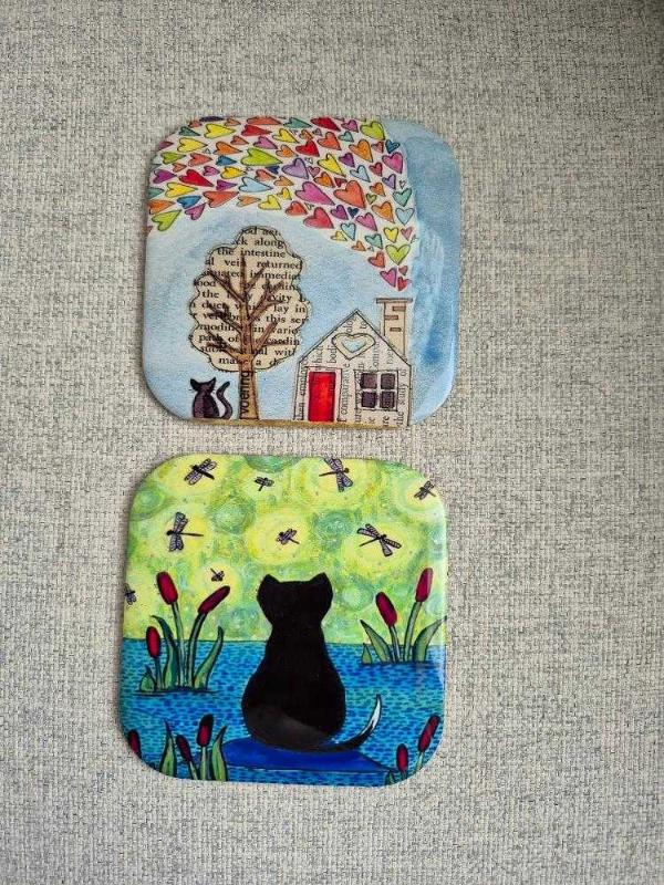 2 adet kedi temalı metal- altı mantar bardak altlığı. 10*10cm. sıfır etiketli.