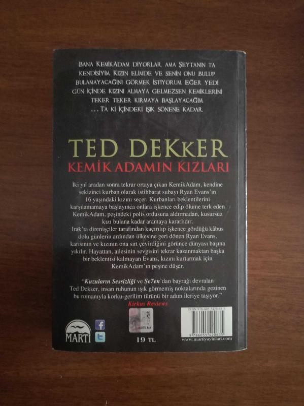 kemik adamın kızları, ted dekker tarafından kaleme alınmıştır. Kitap 2012 yılında martı tarafından yayınlanmıştır. 511 sayfadır. kemik adamın kızları adlı eser Türkçe dilindedir.