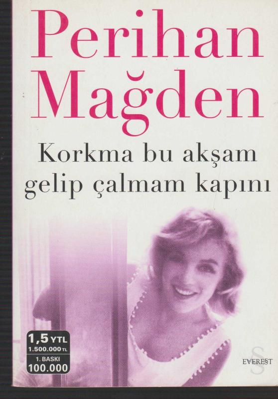 korkma bu akşam gelip çalmam kapını, perihan mağden tarafından kaleme alınmıştır. Kitap 2004 yılında everest tarafından yayınlanmıştır. 144 sayfadır. korkma bu akşam gelip çalmam kapını adlı eser Türkçe dilindedir.