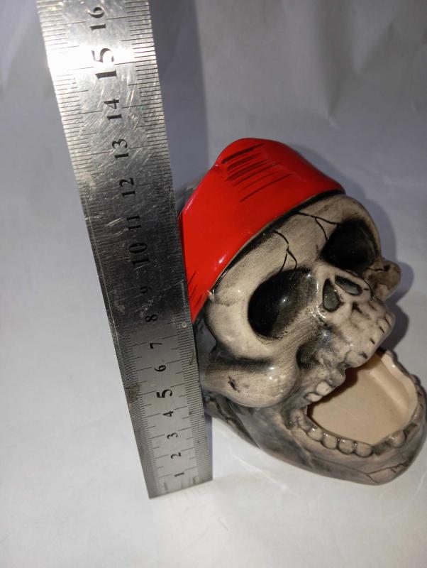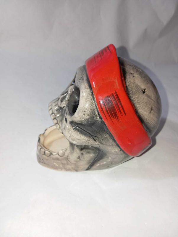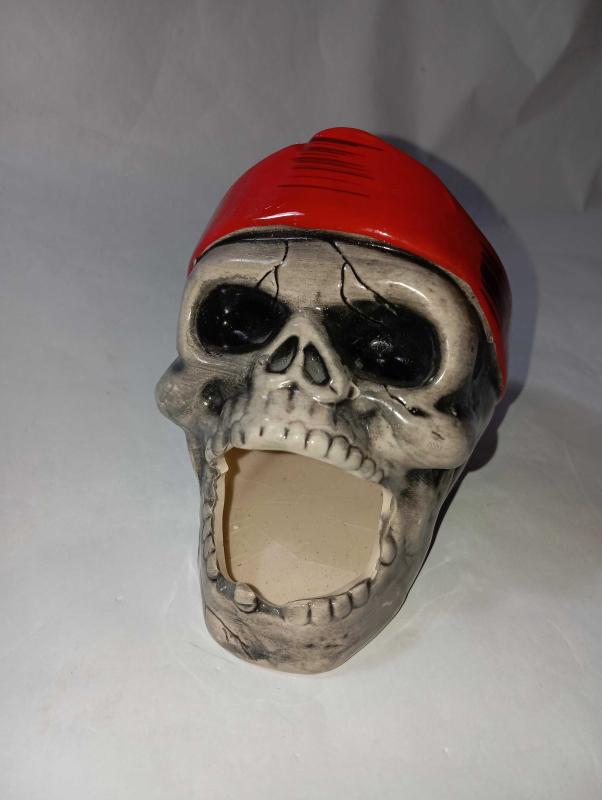 korsan tasarımlı seramik dekoratif bir kuru kafa dekoratif bir obje hem de küllük veya kalemlik olarak kullanılabilen çok amaçlı bir ürün El boyaması detaylara sahip, el işçiliği ile üretilmiş #tdkoleksiyonkurukafa #tdkoleksiyonkulluk başlıklı antika/koleksiyon objesi Türkiye menşe’lidir. Objenin ait olduğu dönem bilinmeketedir.