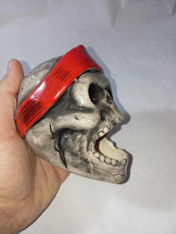 korsan tasarımlı seramik dekoratif bir kuru kafa dekoratif bir obje hem de küllük veya kalemlik olarak kullanılabilen çok amaçlı bir ürün El boyaması detaylara sahip, el işçiliği ile üretilmiş #tdkoleksiyonkurukafa #tdkoleksiyonkulluk