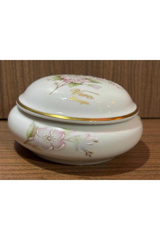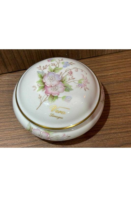 limoges rehausse main el boyama bonboniyer - 11 cm çapında 5 cm yüksekliğinde başlıklı antika/koleksiyon objesinin menşei belirtilmemiştir. Objenin ait olduğu dönem bilinmeketedir.