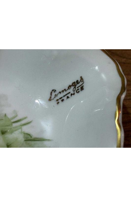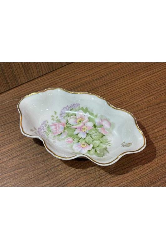 limoges rehausse main el boyama sunumluk şekerlik kase - 17 cm 10,5 cm x 3 cm ölçülerinde başlıklı antika/koleksiyon objesinin menşei belirtilmemiştir. Objenin ait olduğu dönem bilinmeketedir.