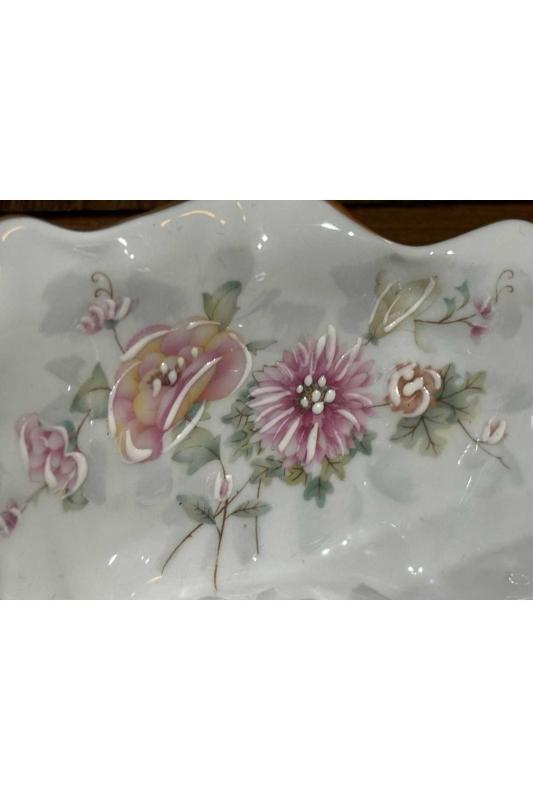 limoges rehausse main el boyama sunumluk şekerlik kase - 19 cm x 12 cm x 6 cm ölçülerinde başlıklı antika/koleksiyon objesinin menşei belirtilmemiştir. Objenin ait olduğu dönem bilinmeketedir.