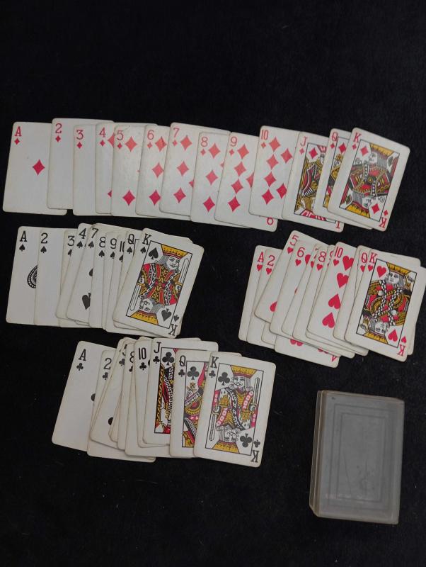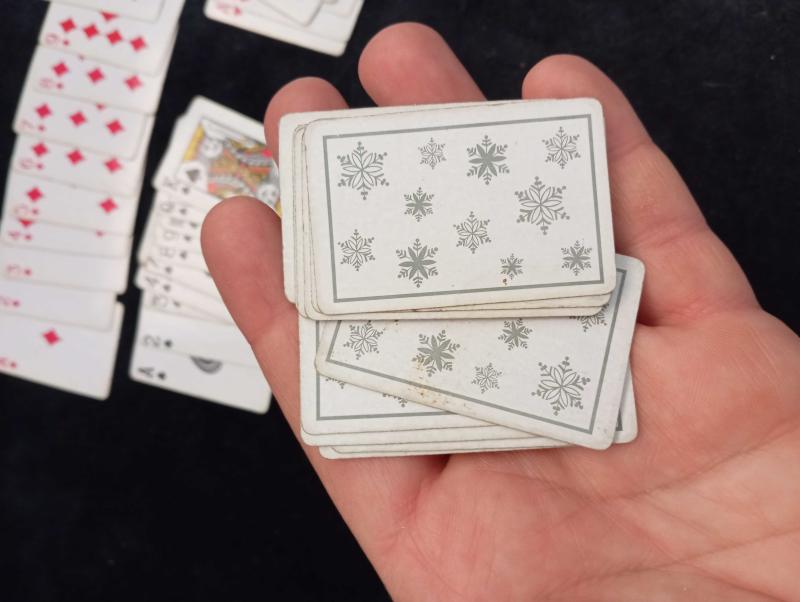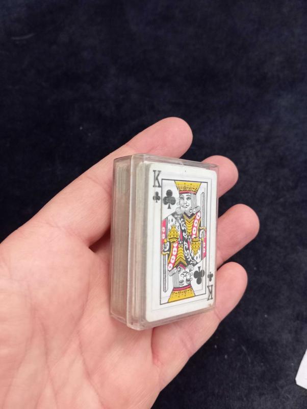 minyatür iskambil Oyun Kartları destesi 52 kart tam paketinde genel durumu iyidir. az kullanılmış. 52 kart mevcut plastik kutusunda
