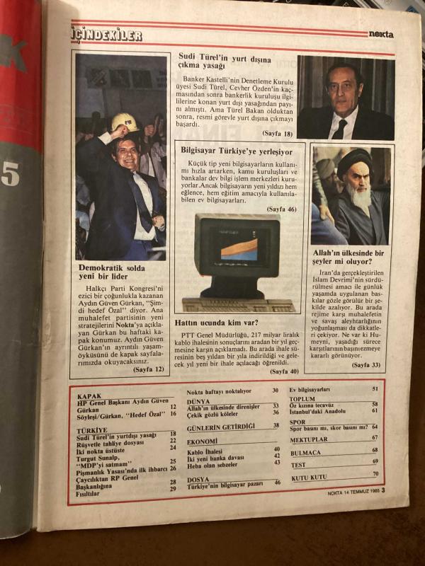 nokta dergisi 14 temmuz 1985 sayı 27 yıl 3 (sinema kitap müzik rıdvan dilmen demokratik sol sodep hp aydın güven gürkan sudi türel hasan kırdar mdp pişmanlık yasası refah partisi iran uzakdoğu seks ticareti türkiye'de bilgisayar atari ) adlı eser, Kitap > Süreli Yayınlar > Dergiler > Siyaset kategorisinde İkinci El olarak satıştadır.