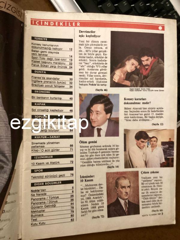 nokta dergisi 15 kasım 1987 sayı 45 yıl 5 (sinema kitap müzik sol aşkı keşfediyor spor toto brezilya çocuk fahişeler rambo batuvan aşireti pkk tuvalet alışkanlıkları ozon deliği aydın menderes) adlı eser, Kitap > Süreli Yayınlar > Dergiler > Siyaset kategorisinde İkinci El olarak satıştadır.
