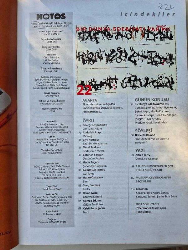 burhan sönmez hazırladı: bir dünya edebiyatı var mı? notos sayı 77, ağustos/eylül 2019. kusursuz durumda