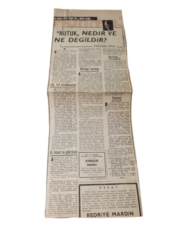 nutuk nedir ne değildir & sebahattin selek - 60 lı yıllardan kesilmiş gazete yazısı adlı eser Türkçe dilindedir.