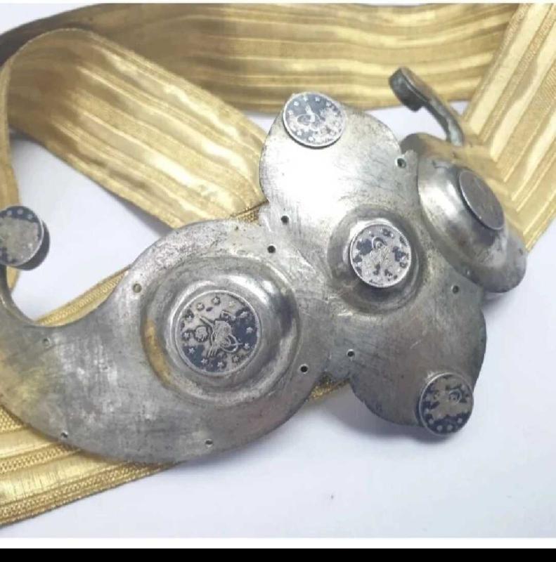 osmanlı türk kemeri, gelin kemeri gümüş kaplama başlıklı antika/koleksiyon objesi Osmanlı menşe’lidir. 1800-1849 arası dönemine aittir.