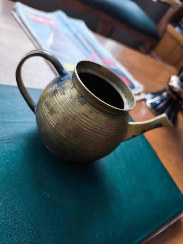 pirinç demlik kapaksız başlıklı antika/koleksiyon objesi Avrupa menşe’lidir. Objenin ait olduğu dönem bilinmeketedir.