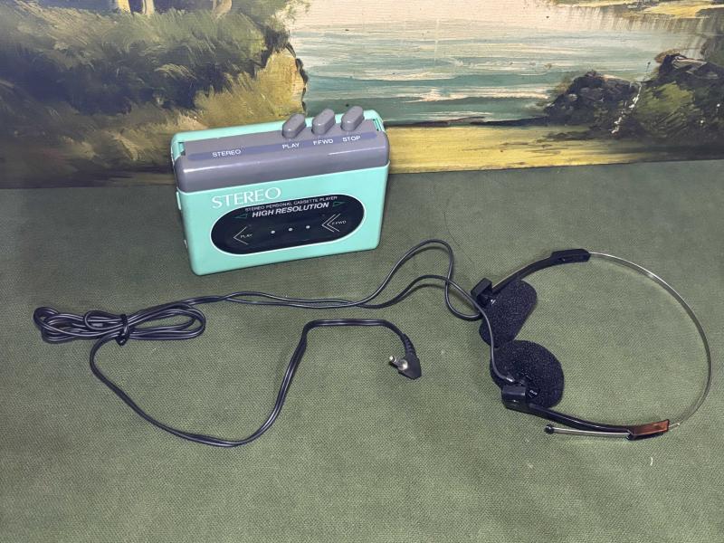 popart 1980 ler stereo walkman - kulaklığı ile birlikte çalışır durumda - yeşil renk başlıklı antika/koleksiyon objesi Avrupa menşe’lidir. 1980-1999 arası dönemine aittir.