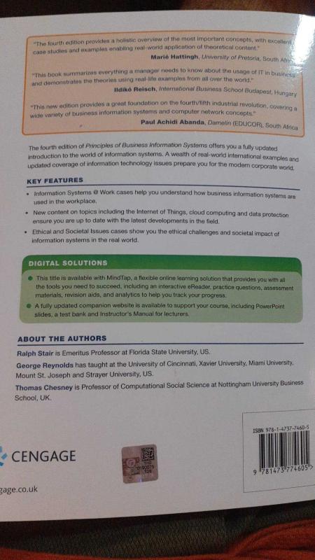 principles of business information systems, ralph stair - george rewynolds - thomas chesney tarafından kaleme alınmıştır. Kitap 2020 yılında cengage tarafından [ingiltere] yayınlanmıştır. 520 sayfadır. principles of business information systems adlı eser İngilizce dilindedir.