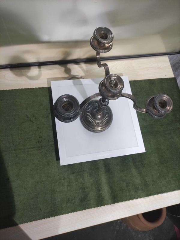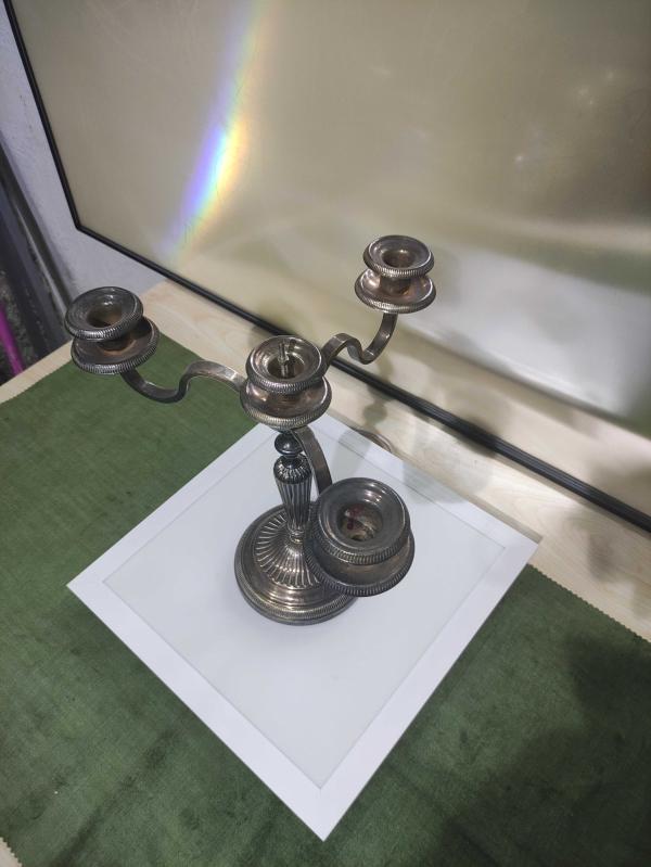 güzel bir şamdan ağır ürün materyali belirsiz kol kısmı pirinç üzeri kaplama olabilir ama basit bir ürün değil. üründeki kusur en ustteki civatayı bir kereye mahsus sıkmak lazım bütün mekanizmayı o tutuyor. normalde o mum haznesine bağlıymış çıkmış . biraz zor takılıyor ama halledilebilir alana hayırlı olsun
