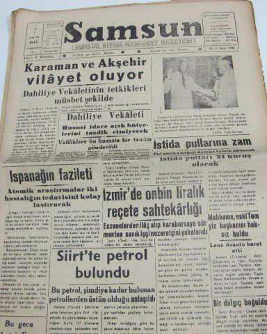 çıktığı yer : samsun gazete adı :samsun yayın süresi: sahibi: irfan yankuşan sayı :1925 yıl :1955