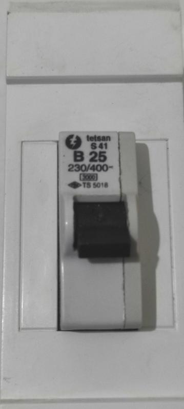 Tetsan S41 sigorta anahtarı, 25 amper, 230/400 volt değerinde ve TSEK sertifikalı.kullanilmadi çalışır durumda ebatları yükseklik 14 cm genişlik 6 cm eni 4;5 cm diğer ürünlerime de bakmayı unutmayın