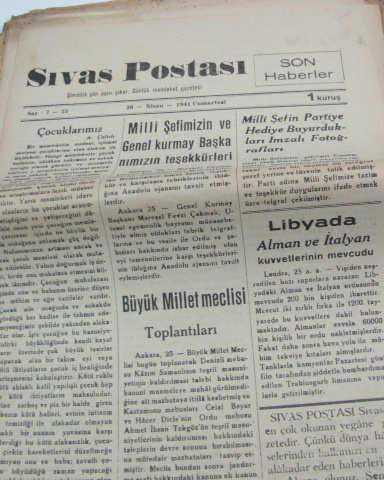 çıktığı yer : sivas gazete adı : sivas postası yayın süresi: sahibi: kemal kitapcı sayı : sayı 23 yıl :1941