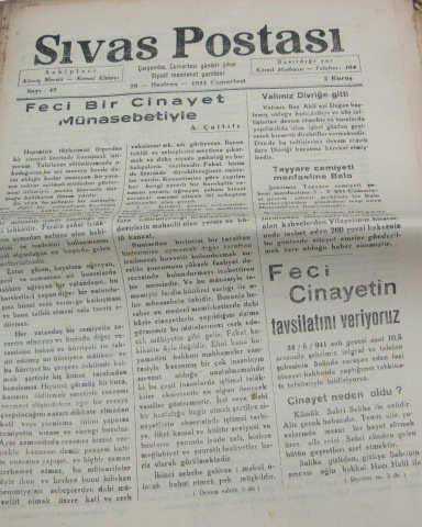 sivas postası gazetesi sayı 45 1941 sahibi: kemal kitapcı
